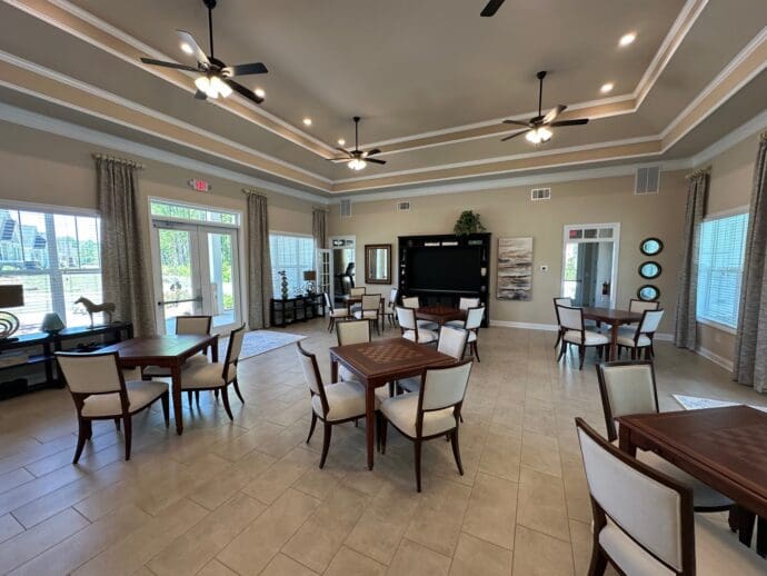 The Grand Clubhouse features a large Cards/Games/Entertainment space, Conference Room, Fitness Center and large Food Prep & Serving Kitchen.