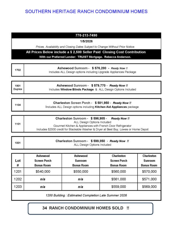 With 2026 now upon us, we at The Orchards Group want to wish you and yours a healthy, happy and prosperous New Year. If it’s been awhile since you have visited the Orchards of South Forsyth we can proudly tell you that there are just a handful of buildings left to start and we have an amazing array of inventory homes waiting for you to come and tour today. See our current Price Lists below.